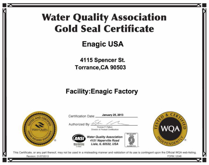 美國水質協會(WQA)金印章認證