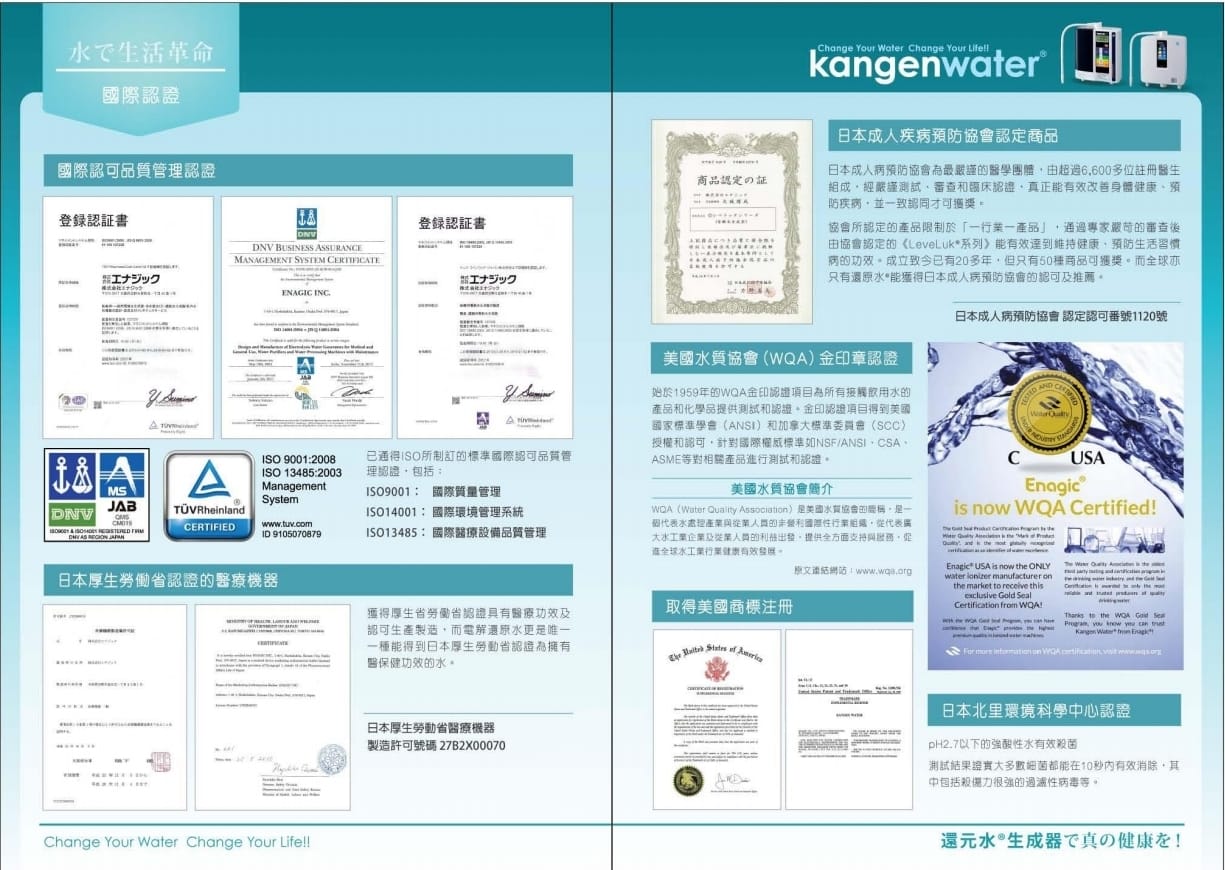 美國WQA, NSF/ANSI, CSA 証書