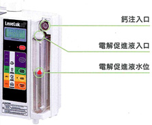 B) 內藏電解促進液箱可連續穩定地生成強酸性水 ( 外用 ) 、強還原水® ( 非飲用 ) 內藏電解促進液箱可方便穩定地連續生成強酸性水 ( 外用 )、強還原水® ( 非飲用 )。 注入一次電解促進液(400g),約可生成15~20公升強酸性水 ( 外用 ) 。